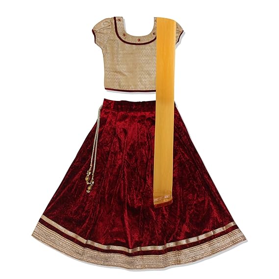 Buy Arunika Party Wear Lehenga Choli For Girls Baby Girl Golden Choli With Velvet Lehenga Maroon At Amazon In