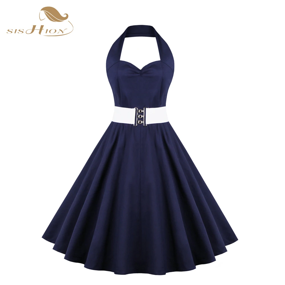 Sishion Frauen Elegant Hepburn 50 S Vintage Retro Rockabilly Kleid Plus Grosse Sexy Neckholder Belted Swing Party Kleid Blau Vd0363 Dress Shose Dresses Nightdress Quotes Aliexpress
