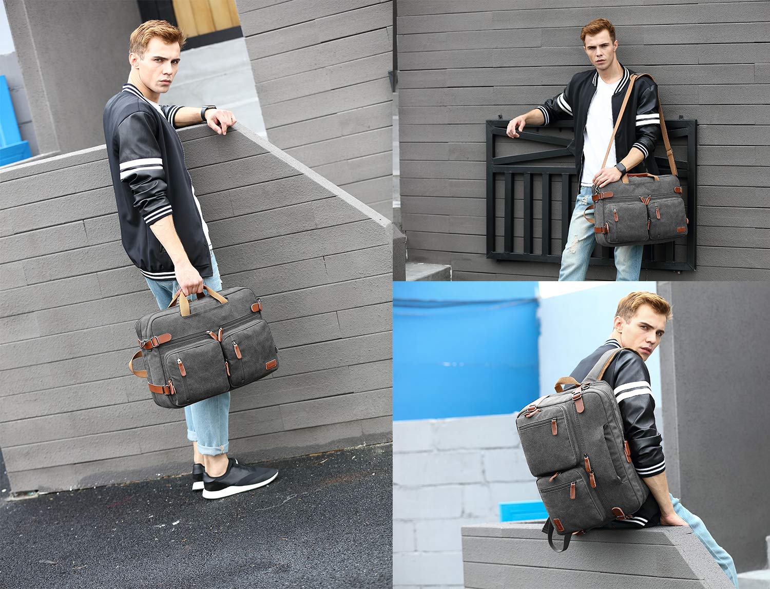 Srotek Mochila Para Portatil Hombres Convertible Bolsa De Mensajero De Nylon Resistente Al Agua Compatible Con Macbook Acer Hp Dell University College Maletin De 17 3 Pulgadas Gris Oscuro Lona Mochilas