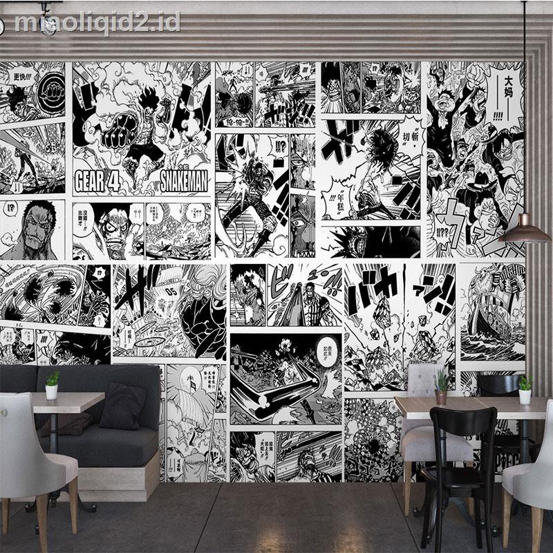Animated Cartoon One Piece Wallpaper 3 D Creative Black And White Comic Bedroom Of Children Room Dormitory Restaurant Background Wall Paper Shopee Indonesia